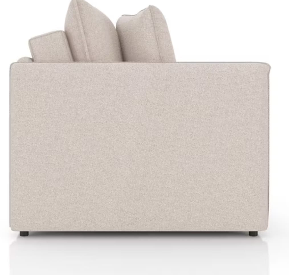 Enquanto a estrutura sem caixa traseira, os braços compactos e a coloração neutra dão um toque elegante e contemporâneo à decoração, o móvel tem estofamento que une espuma, percintas elásticas e molas no assento, tudo para você ficar à vontade e curtir bons momentos de descanso. Seja para assistir séries, ler seus livros ou acompanhar a final do campeonato, esse sofá acolhedor vai deixar sua rotina mais confortável e sua casa mais bonita. Incrível, não é?